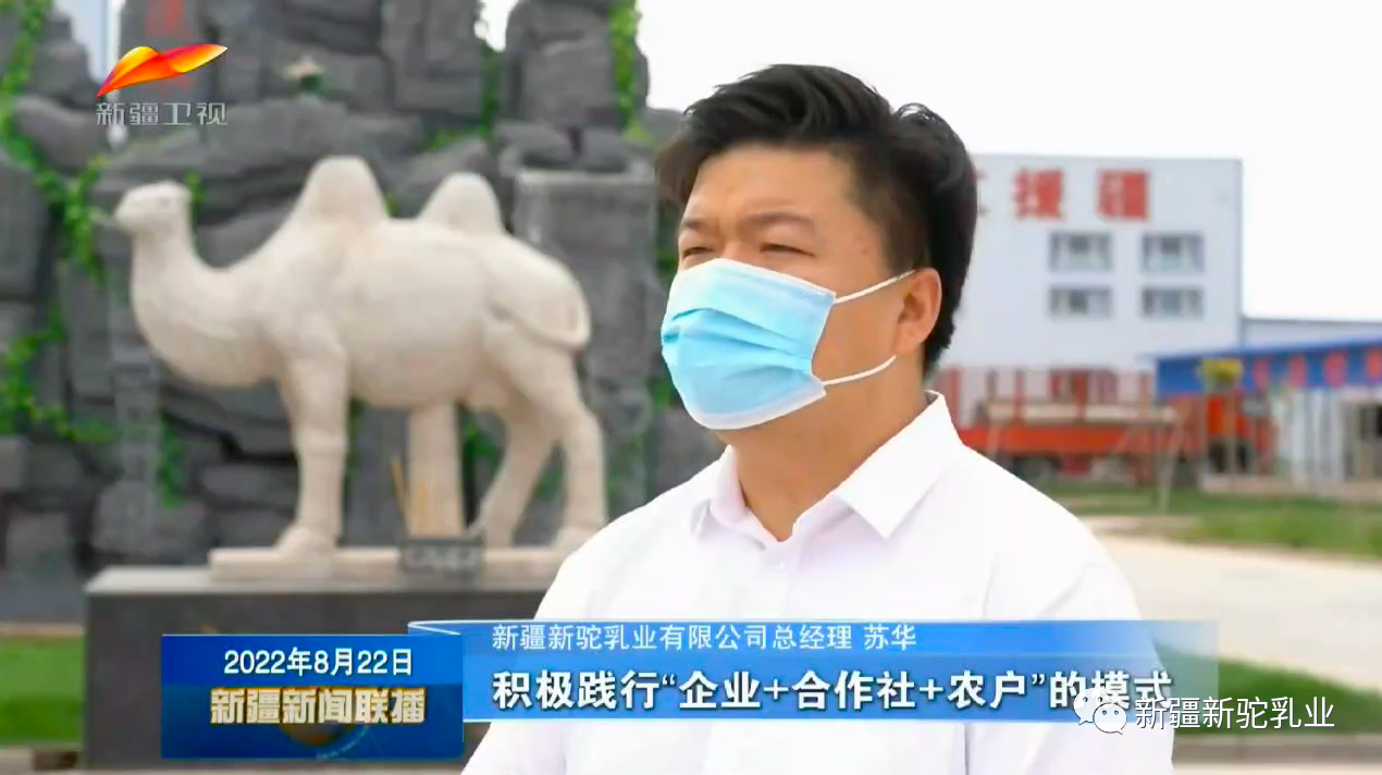 2022年8月22日19時30分,在新疆衛視漢語、新疆二套維吾爾語、三套哈薩克語并機直播的《新疆新聞聯播》,對新疆新駝乳業有限公司在疫情期間,開足馬力生產確保完成全年目標任務,最大限度減少疫情對牧民養殖的影響,協助牧民科學飼養駱駝,助力鄉村振興進行報道。 短短一個多月的時間,這是《新疆新聞聯播》第三